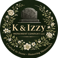 At K & Izzy Monument Company, we understand how important it is to honor the lives and legacies of those you love. Every memorial we create is crafted with care, attention to detail, and a deep respect for your family’s wishes. Whether you are planning ahead or selecting a monument today, our team is here to guide you through the process with compassion and expertise. Let us help you create a lasting tribute that celebrates their story and preserves their memory for generations. Contact us today to begin designing a memorial that truly reflects the life you want to honor.